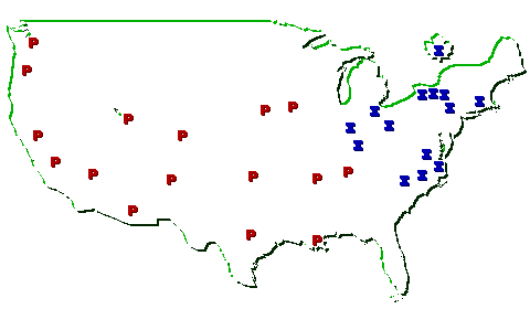 Move your cursor over the icons to display the name and location of each of the 30 current AAA ballparks in the status bar. Click on an icon to go to that ballpark's page. An "I" denotes an International League ballpark and a "P" denotes a Pacific Coast League ballpark. Back to the Ballparks Facts & Figures page Help us provide a better web site by completing our feedback form BALLPARKS © 1996-2012 by Munsey & Suppes.