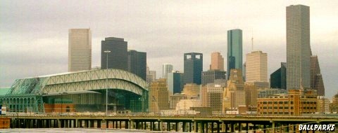 Location: On the east side of downtown Houston at the corner of Crawford and Texas Streets, adjacent to Union Station and near the George R. Brown Convention Center. Left field (NW), Crawford Street; third base (SW), Texas Avenue; first base (SE), Hamilton Street; right field (NW), Congress Avenue. Dimensions: Left field: 315 ft.; left-center: 362 feet; center field: 435 feet; right-center: 373 feet; right field: 326 feet; backstop: 49 feet. Fences: Left field: 21 feet; center field: 9 feet; right field: 7 feet. Materials: Concrete and steel structure clad in brick and limestone. On May 20, 1996, a special sports task force recommended that Houston and Harris County spend $625 million to build a new baseball stadium and a new downtown basketball arena, and refit the Astrodome for football and the rodeo. It did not say how to pay for it, but it did recommend some possible revenue sources, including a sales tax and new taxes on cigarettes and mixed beverages. The report was given to Mayor Bob Lanier and Harris County Judge Robert Eckels, who appointed the 23-member Houston/Harris County Sports Facility Public Advisory Committee in January 1996. The Oilers moved to Tennessee in 1997 and the owners of the Astros and Rockets said they would consider moving to another city unless they got new venues. The franchises said they could not make enough money in their outdated facilities to compete against teams with new parks, stadiums and arenas. The draft report said it was difficult to measure the benefits of professional sports, but it estimated that such local businesses as restaurants and hotels earned an annual after-tax profit of $60 million on football, basketball and baseball. Astros owner Drayton McLane Jr. said a downtown stadium would be best for baseball because it would generate excitement and put the team closer to the center of the region's population. In 1995, he considered selling the Astros to Virginia businessman Bill Collins, who wanted to move the team to the suburbs south of Washington, D.C.